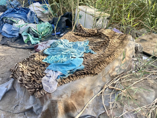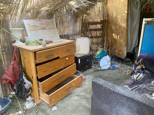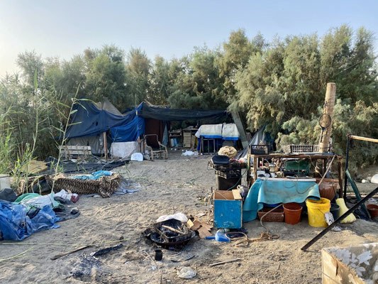 Wir sind an einer Küste im «Niemandsland» gelandet. Hier kümmert sich niemand für Ordnung und Aufenthaltsbewilligung. Was dazu geführt hat, dass es leider sehr vermüllt ist und sich etliche Aussteiger angesiedelt haben bzw. hatten. Denn viele haben den Ort wieder verlassen. Die geräumten Behausungen und Zelte liegen immer noch herum. Verschimmelte Matratzen, Blanken, Haushaltartikel, ja ganze Küchen, Sonnenkollektoren und Autobatterien liegen herum. Es scheint niemanden zu interessieren. Ab und zu kommen offenbar Freiwillige vorbei und befreien den Strand vom Müll.