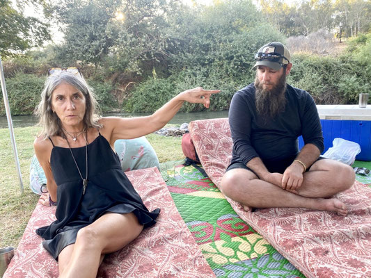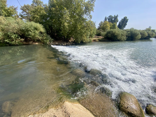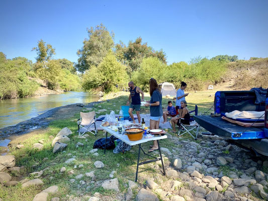 Nach dem Frühstück fahren wir an den heiligen Jordanfluss. Ihr Grundstück grenzt an den Fluss und wir bekommen die Gatterschlüssel ausgehändigt damit wir selbständig an den Jordan fahren können. Ein herrliches idyllisches Plätzchen direkt am Wasser ist schnell gefunden. Wir teilen es mit fünf Jungs die auch einen Schlüssel haben, sprich Freunde von ihnen sind. Wir sitzen den ganzen Tag zusammen, kochen und tauschen uns rege aus. Wir geniessen das Lagerfeuer, den Vollmond und die Atmosphäre. Die Israelis erscheinen uns immer mehr als sehr entspanntes, cooles und gebildetes Volk. Es stimmt gerade alles und fühlt sich absolut richtig an. Wir haben mittlerweile so viel Punkte in Google Maps und noch mehr Einladungen erhalten, ich weiss wirklich nicht, ob es an uns liegt oder wir einfach immer im richtigen Moment an der richtigen Stelle sind. Das Leben meint es gut mit uns und wir sind sehr dankbar dafür.