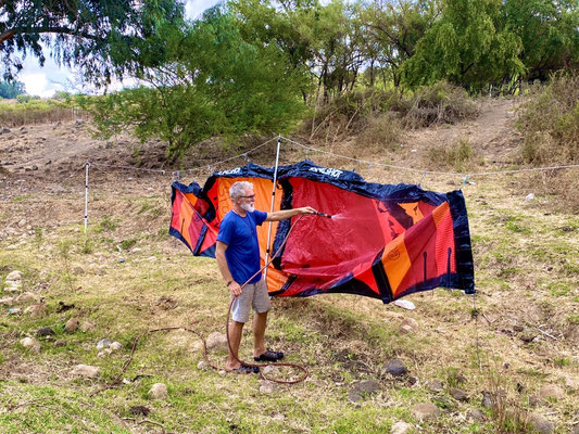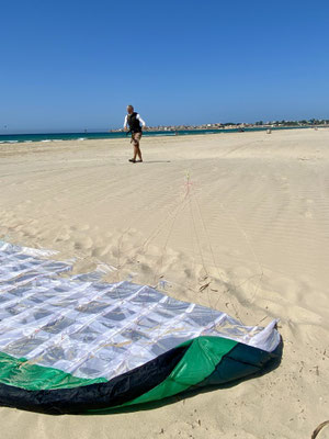 Der nächste Tag begrüsst uns mit stahlblauem Himmel, genügen Wind zum Kiten und heissen 33 Grad. Perfekt, wir beschliessen den Tag hier zu bleiben um zu kiten, träumen, und zu sein, denn das können wir sehr gut.