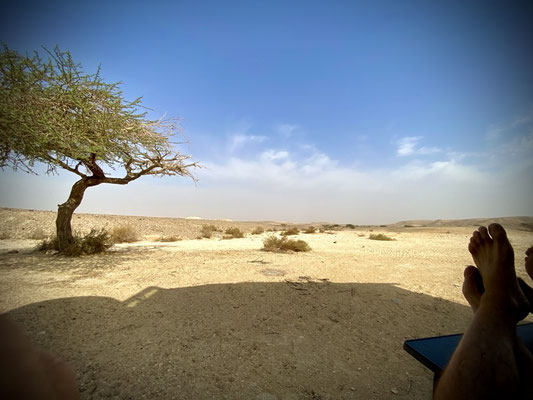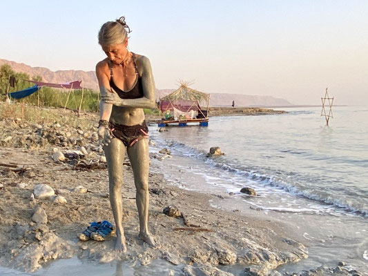Wir werden hier nicht zum Essen eingeladen jedoch oft auf einen Joint oder einem Magic Mushroom. Der Grund für das Fehlen von Polizei/Militär etc. sind die vielen Sinkholes. Sinkholes (auf YouTube gut dokumentiert) entstehen durch den sinkenden Wasserspiegel des Toten Meeres. Es entstehen Löcher die mit Schlamm gefüllt sind und oft mit schwefelhaltigem Wasser angerichert sind. Den Schlamm, den wir genüsslich einreiben, wird eine grosse Heilwirkung nachgesagt, denn er enthält viele wichtige Mineralstoffe und Spurenelemente. Die Luft riecht nach Schwefel, Weed und Salz. Gitarren Klang und Trommelklopfen begleiten uns in einem sanften Schlaf. Die Stimmung ist sehr friedlich und wir fühlen uns wohl in mitten von Hippies/Aussteigern und tanzenden Körpern. Wir bleiben noch ein paar Tage und nein, wir können das Leben auch ohne irgendwelche Substanzen intensiv geniessen. Wobei so ein «Pilzli» sicher eine spannende Erfahrung wäre, vielleicht im nächsten Leben. Die unter euch die Erfahrungen damit haben, lasst uns doch daran teilhaben.