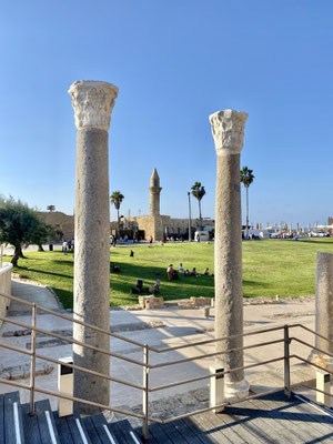 Nach dem ganzen Prozedere haben wir den Kühlschrank gefüllt und Haifa hinter uns gelassen. Wir wollten nach Akko an den Strand. Schnell haben wir auf dem weissen, pudrigen Sandstrand einen geeigneten Stellplatz gefunden. Akko, die alte Hafenstadt, liegt am Mittelmeer, ist von einer massiven Stadtmauer umgeben und fest in arabischer Hand. Wir schlendern durch die engen Gassen und geniessen noch ein Eis. Wir fühlen uns zurück in die Türkei versetzt, wären da nicht die exorbitant hohen Preise. Israel ist preislich etwa in derselben Liga wie die Schweiz.