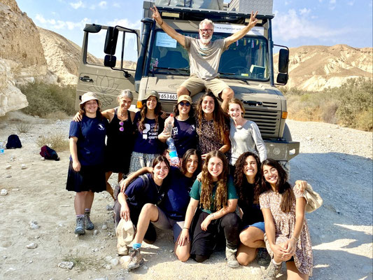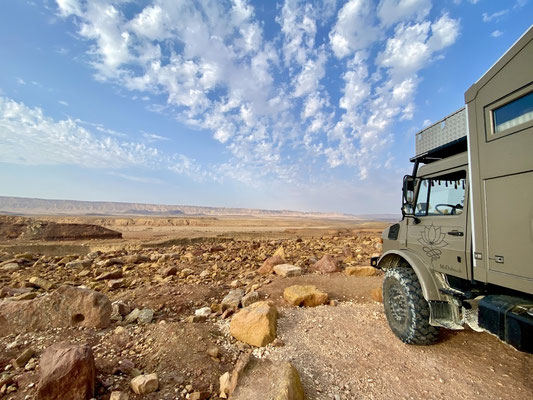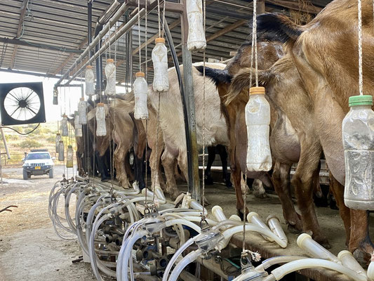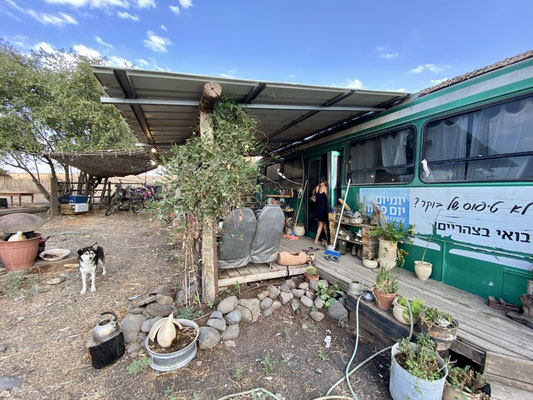 Zohar hat 70 Ziegen die sie betreut, pflegt und melkt um ihren wunderbaren variantenreichen Ziegenkäse herzustellen. Nach der holprigen coolen Fahrt mit sehr vielen spannenden Infos geht’s zurück. Omer zeigt uns den ganzen Hof und den umgebauten Bus sowie seine 2 Unimogs. Mit einem davon haben die Beiden vor über 20 Jahre Afrika bereist.