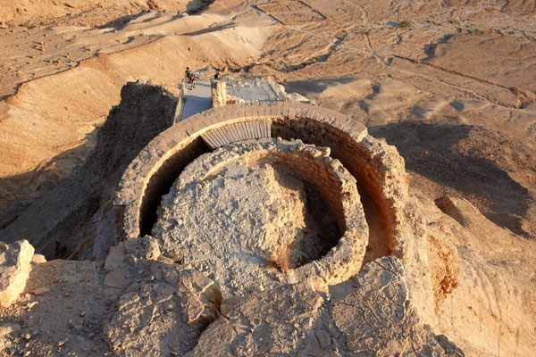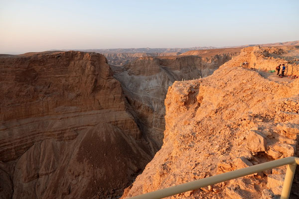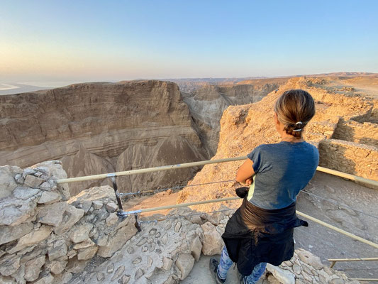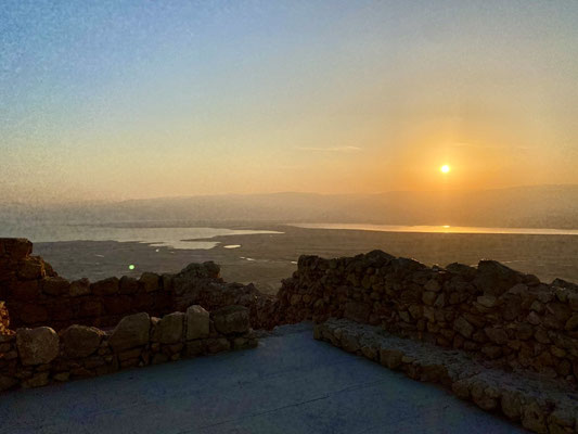 Über En Gedi, einem Naturreservat in dem wir Wandern und Baden, gelangen wir nach Masada. Masada ist eine archäologische Stätte hoch auf einem Gipfelplateau liegend mit einmaliger Sicht über das Tote Meer. Auf diesem Plateau liess sich Herodes eine Palastfestung erbauen welcher ihm als Zufluchtsort vor jüdischen Feinden und Kleopatra dienen sollte. Wir besteigen den geschichtsträchtigen Ort sehr früh am Morgen um bei Sonnenaufgang die Stimmung auf uns wirken zu lassen. Schweissgebadet erreichen wir die Plattform, werden oben für unsere Strapazen reichlich belohnt.