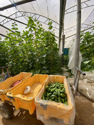 Die wirtschaftliche Lage zwingt einige Farmer das Handtuch zu werfen. Felder und Greenhouses sind leer und werden nicht mehr bewirtschaftet. Der Import von Produkten, z.B. aus der Türkei, beeinflussen die Preise stark. Auch in Israel ist der Kunden nicht oder nur selten bereit die teuren lokalen Produkte zu kaufen. Die fleissigen Helfer aus Thailand sind alle krankenversichert, tragen falls nötig Schutzkleidung und werden anständig entlöhnt, so wird uns erzählt. Wir bezahlen lieber etwas mehr, haben aber die Gewissheit, dass keine Kinderhände mitwirken und es den Arbeitern gut geht. Oder kriegen es einfach geschenkt! Es gibt hier in Eid Yahav sogar einen grossen Thaimarkt (wie ist das jetzt mit diesen Produkten und Kinderarbeit, ein Dilemma). Wie cool ist das denn!