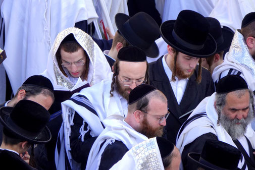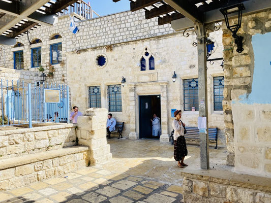 Wir setzen uns auf eine Bank vor einer solchen und lauschen dem wiederholenden Gesang der Rabbiner, Kindern und den Männern zu, welcher immer lauter und ergreifender Singen und ihre Körper wippen, schneller und heftiger vor und zurück. Es wirkt für uns, als seien sie in einer Trance. Die Kabbala-Lehre (das Überlieferte) eine mystische Tradition des Judentums, der unteranderem auch Madonna folgt, soll hier entstanden sein. Er lehrt die Weisheit der Kabbala als notwendiges Mittel zur Korrektur der egoistischen Beziehungen zwischen Menschen und zur Erlangung des Weltfriedens.
