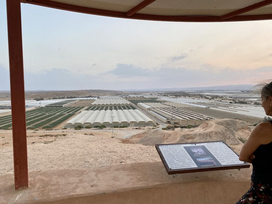 Der Besuch bei Gross in Ein Yahav, einem befreundeten Farmer von Omer, lässt uns erneut staunen. In den 1960-er Jahren ist eine Gruppe junger Menschen voller Energie und Tatendrang auf die mutige Idee gekommen, mitten in der Wüste Negev Gemüse anzupflanzen. Sie wohnten zu Beginn in Campingwagen, lebten sehr Bescheiden und ihre ersten Versuche liessen hoffen. Der Staat Israel unterstützt den Versuch und es wurde nach Wasser gebohrt, Elektrizität verlegt und die ersten Häuser gebaut. In einer Tiefe zwischen 500 und 1’500 Meter stiessen sie auf leicht salzhaltiges Wasser, welches sich offenbar sehr gut für den Gemüseanbau eignet.
