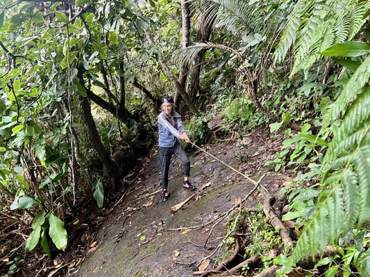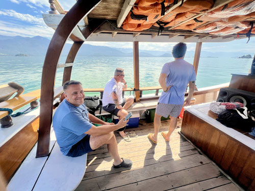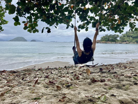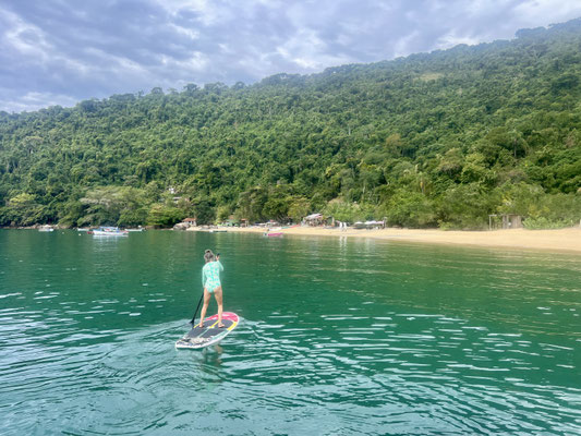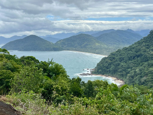 In Praia de Itaguaré tanzen wir mit den Locals zu grandiosem Beat bis tief in die Nacht – ansteckende Lebensfreude pur. In Ubatuba gibt’s Eis im Regenschauer, und am nächsten Tag machen wir eine spektakuläre Wanderung zur Praia do Félix. Der Regen macht den Weg stellenweise zur Rutschpartie – aber dank verankerter Seile, Wurzeln und Bäume hangeln wir uns sicher rauf und runter.