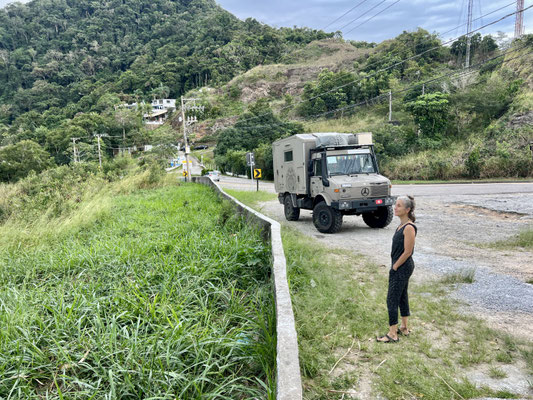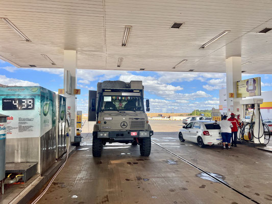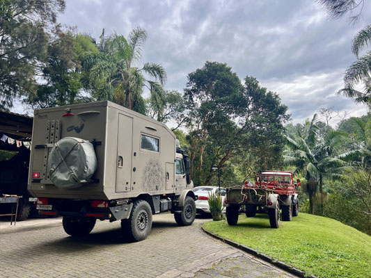 Auf dem Weg zu unserem nächsten Ziel halten wir an einer Tankstelle – und werden dort von einer hübschen jungen Brasilianerin angesprochen. Karina heisst sie, sie unterrichtet an einer Schweizer Schule in São Paulo. Natürlich hat sie unser Schweizer Kreuz am Unimog entdeckt – und wollte einfach kurz Hallo sagen. Wir tauschen Insta-Accounts – und schon ist sie wieder verschwunden. Eine dieser kleinen, zufälligen Begegnungen, die einem ein Lächeln schenken.