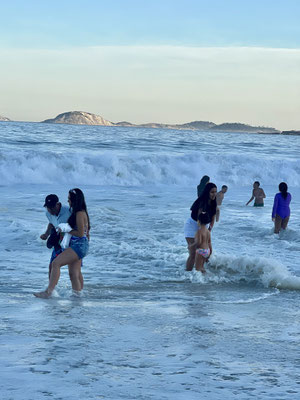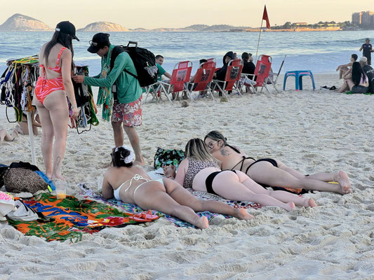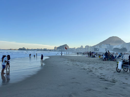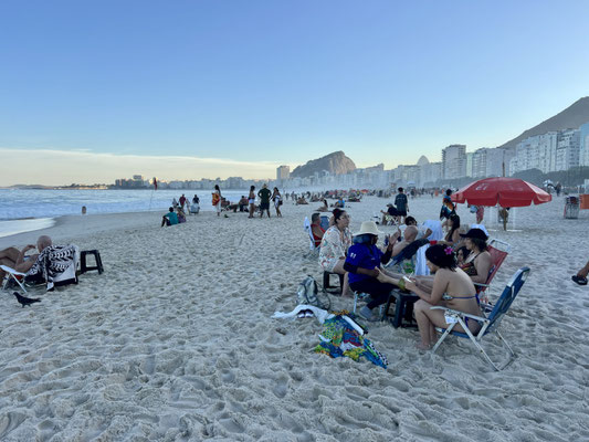 Nach unserem Museumsbesuch setzen wir uns wieder ins Tram – und fahren zur Copacabana. Es ist Sonntag in Rio – und der berühmte Strand zeigt sich von seiner lebendigsten Seite.