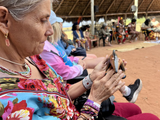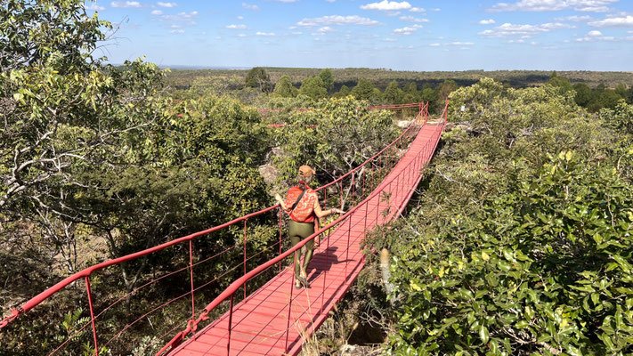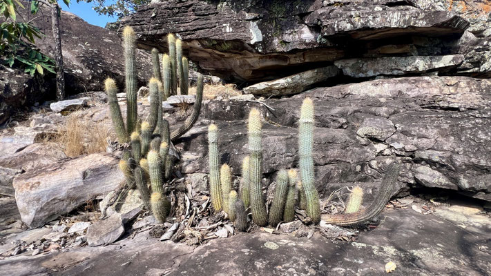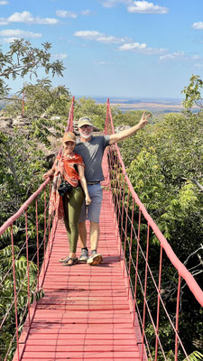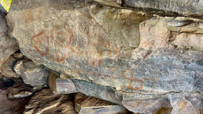 Unterwegs lernen wir einiges über die Vegetation und welche Blätter, Nüsse oder Rinden gegen Krankheiten helfen. Besonders beeindruckt uns das markante Naturdenkmal Pedro do Chapéu – ein riesiger Block aus Quarzgestein, rund 1,5 Milliarden Jahre alt, der wie ein gigantischer «Fels-Pilz» aus der Erde ragt. Die alten Felsmalereien aus prähistorischer Zeit machen den Ort noch mystischer.