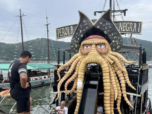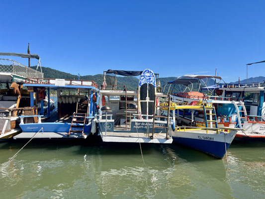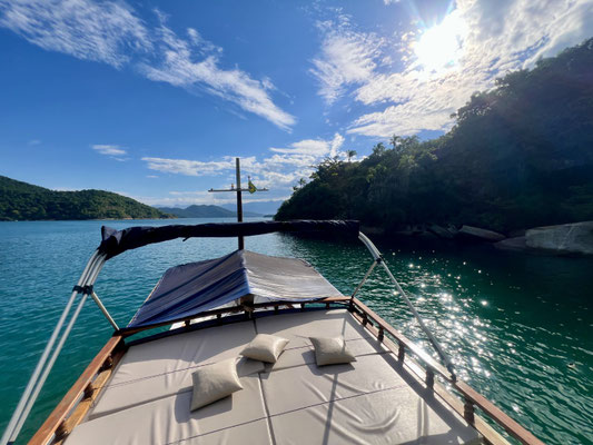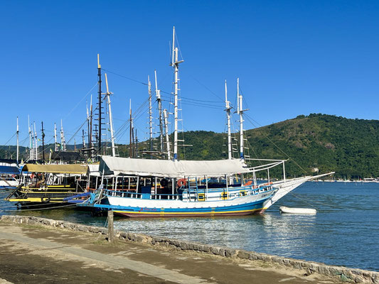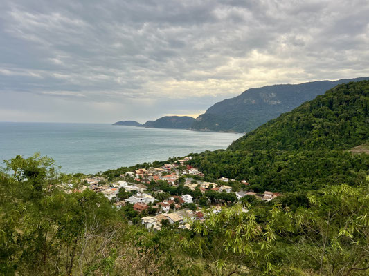 Wir verlassen die Autobahn – was für ein Glück! Statt LKWs und Stau folgen wir nun der kurvigen Küstenstrasse, die sich durch grüne Hügel schlängelt. Vorbei an Palmen, Fischerbooten und kleinen Buchten zeigt sich Brasilien hier von seiner schönsten Seite: tropisch, verträumt und vielerorts noch unverbaut.