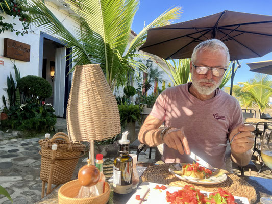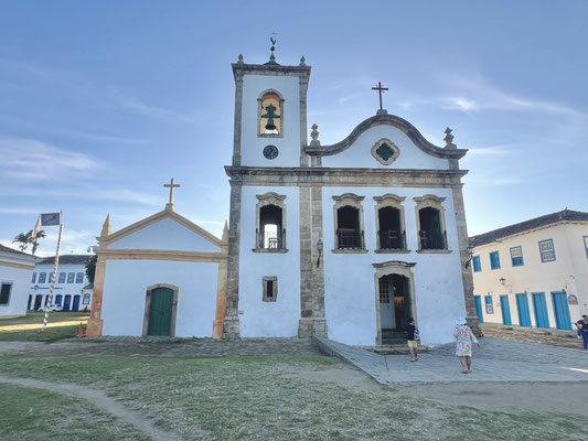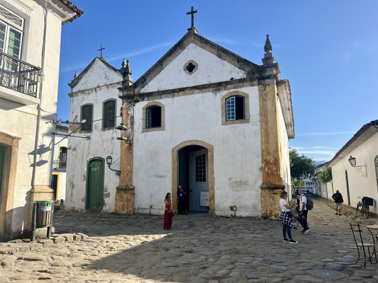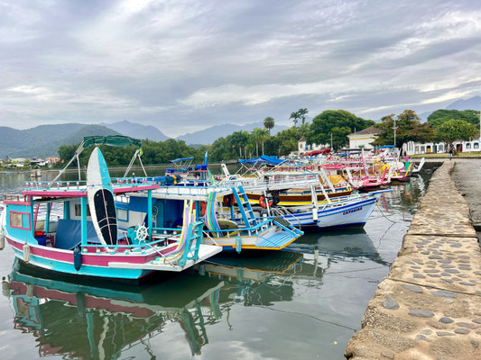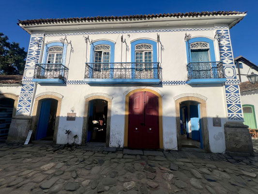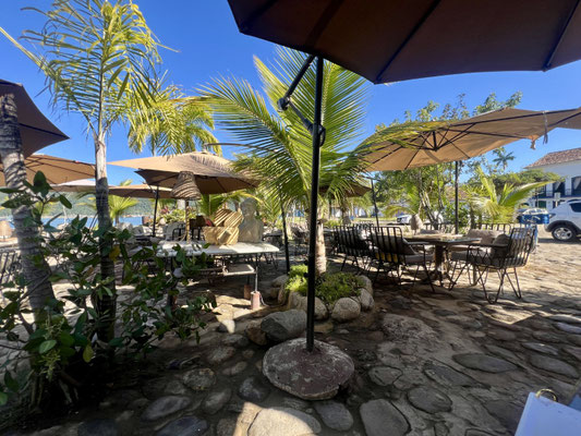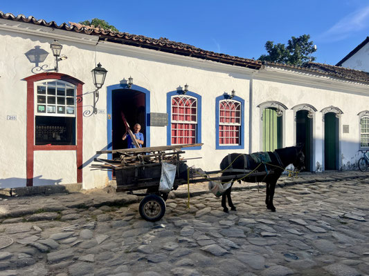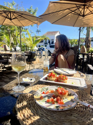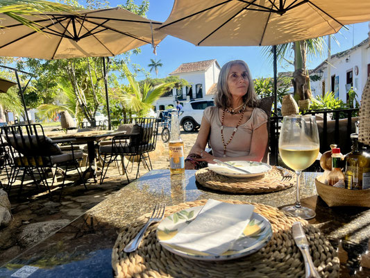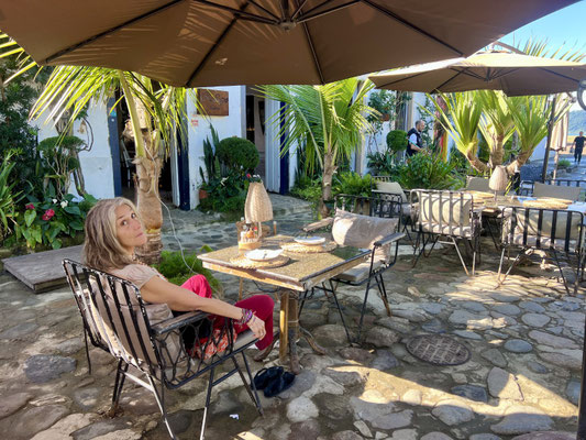 Seit 2019 gehört Paraty offiziell zum UNESCO-Weltkulturerbe. Die Stadt empfängt uns mit stahlblauem Himmel, und schon im ersten Restaurant – das einfach nur einladend wirkt – machen wir Halt.