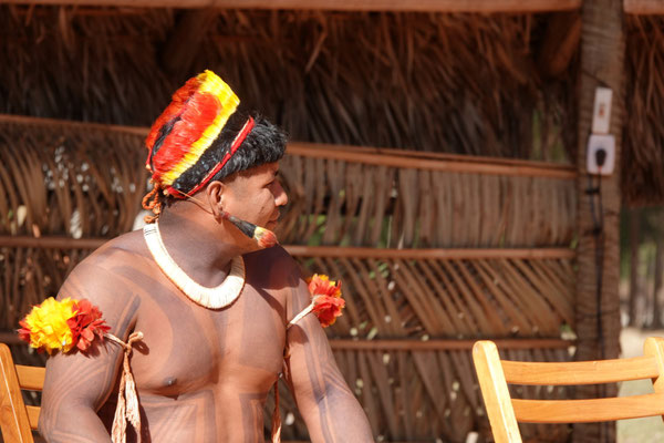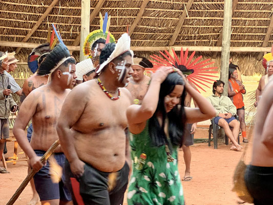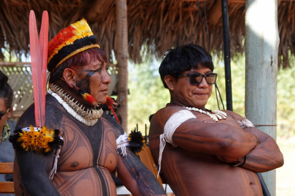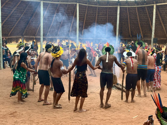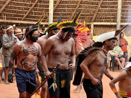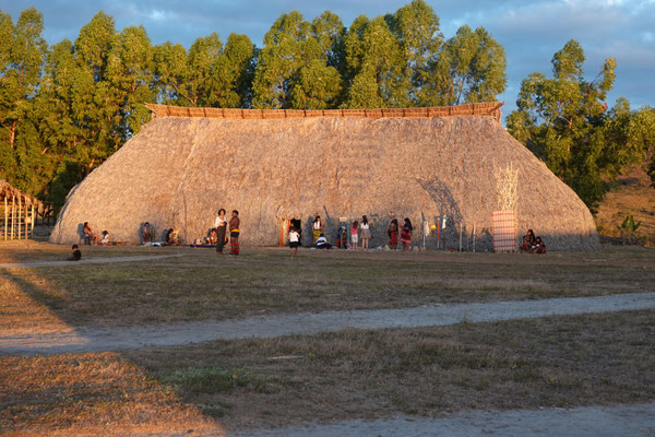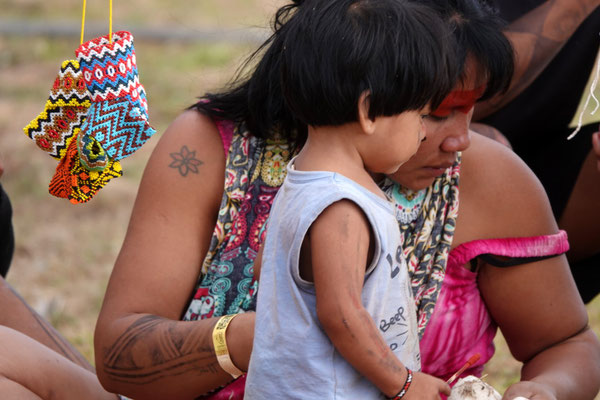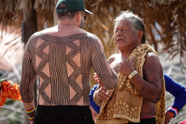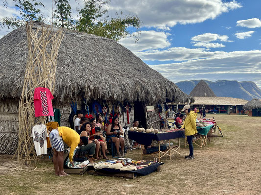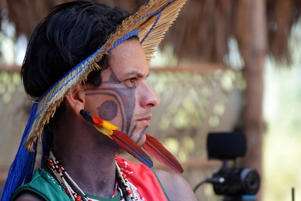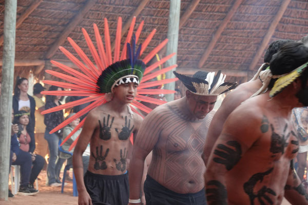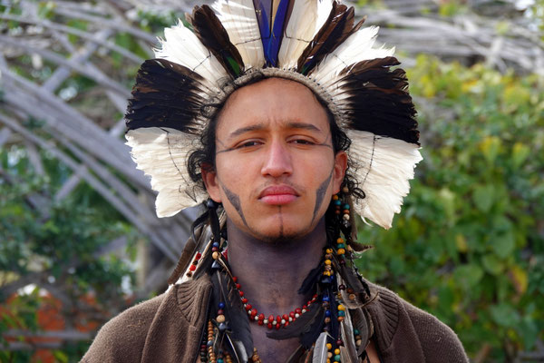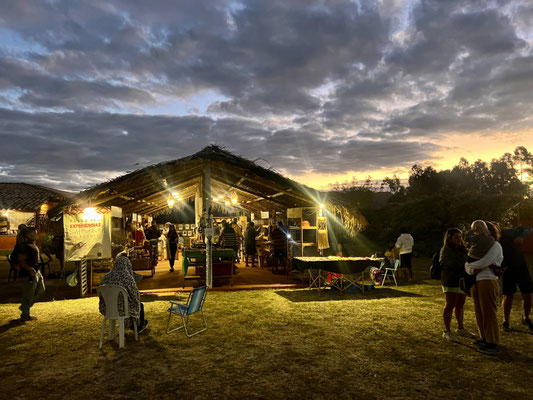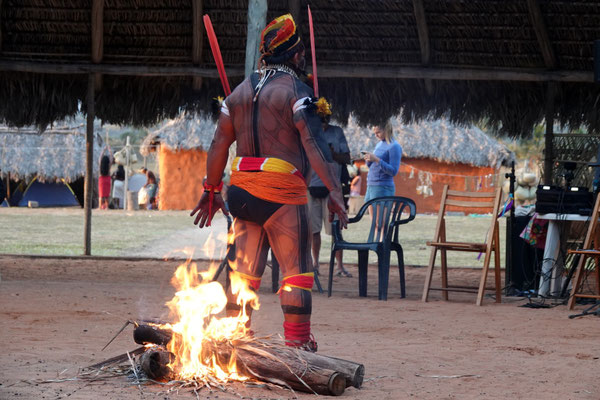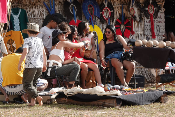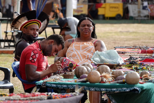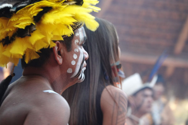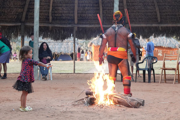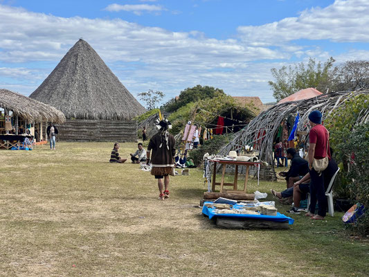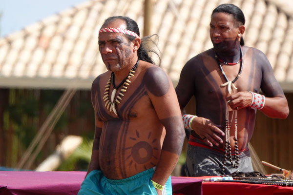 Am nächsten Morgen – wieder sehr früh – düsen wir los zum Aldeia Multiétnica. Ein mehrtägiges Treffen, bei dem rund 18 indigene Ethnien aus allen Teilen Brasiliens zusammenkommen, um ihr kulturelles Erbe mit uns Besuchern zu teilen. Auch der Stamm von Tupya, den Fulni-ô (das „ô“ sieht aus wie ein umgekehrtes Dach oder ein V – so hat es Dani jedenfalls beschrieben), ist mit dabei.