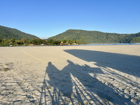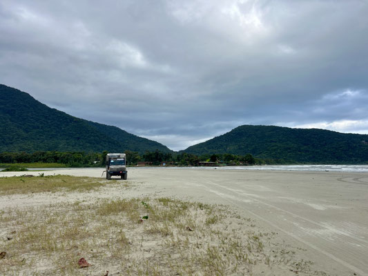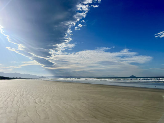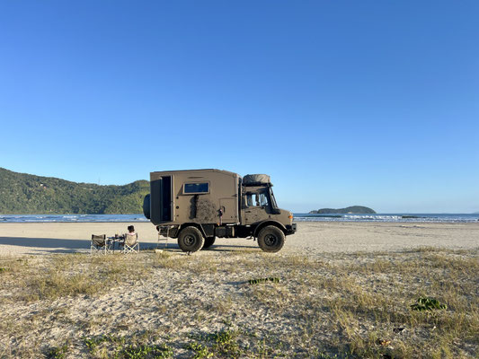 Am Abend fahren wir noch ein Stück weiter und schlafen ganz allein auf einem abgelegenen, offiziell erlaubten Strandabschnitt. Ich weiss nicht, wie es hier im Sommer aussieht – aber jetzt, im brasilianischen Winter, sind wir die Einzigen weit und breit. So ruhig, so friedlich – wir lieben es.