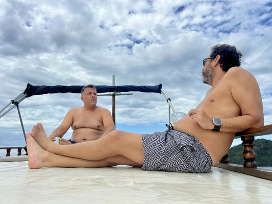 Als ob das nicht schon traumhaft genug wäre, werden wir von Michel, einem langjährigen Freund von Dani, herzlich empfangen. In seiner geschmackvollen Villa oberhalb der Buchten finden wir einen unglaublichen Rückzugsort – und tauchen ein in einige Tage voller Luxus und Familienleben.