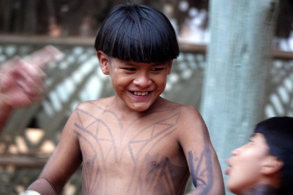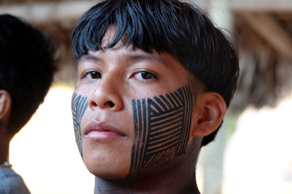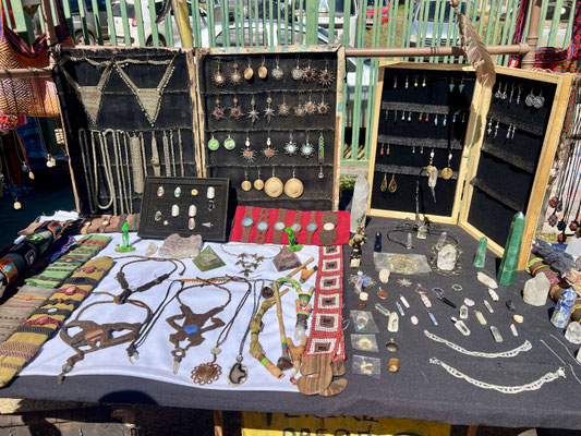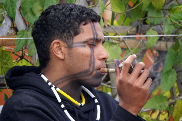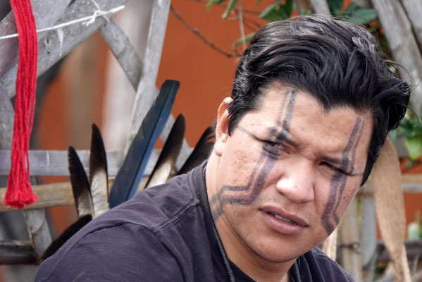 Heute Morgen hat uns die Neugier zum Wochenmarkt geführt. Zwischen getrockneten Heilpflanzen, selbstgemachtem Schmuck und frischem Gemüse fällt uns zum ersten Mal in dieser Region ein indigener Mann auf. Er trägt traditionelle Kleidung, hat ein tätowiertes Gesicht, schwarze, kunstvoll verzierte Hände – und steht mit ruhiger Präsenz mitten im Getümmel.