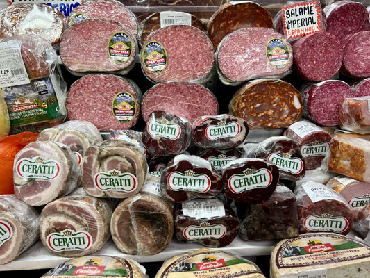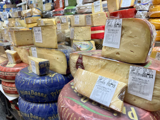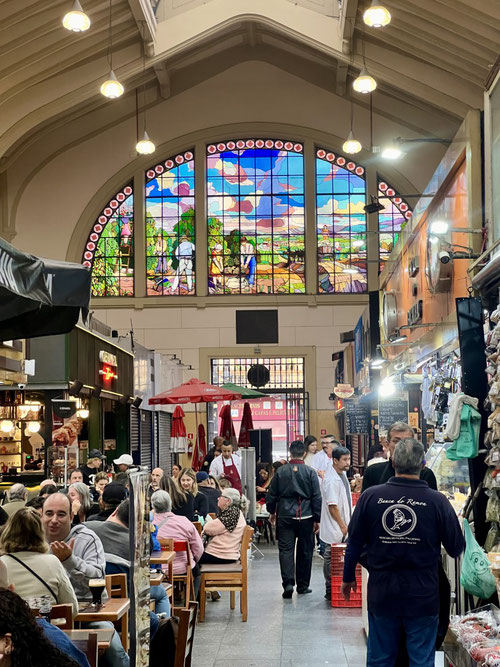 Am Sonntag machen wir uns zu viert auf den Weg in Richtung Downtown. Unser erster Stopp ist die grosse Markthalle – ein quirliger, lauter Ort, in dem die berühmten Mortadella-Brötchen so gross sind wie mein Gesicht. Die Preise? Ebenfalls stattlich.