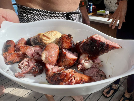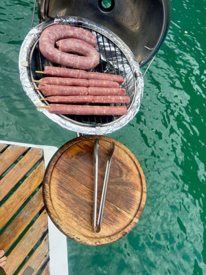 Es gibt Bier, Musik, Tanz – und Fleisch in rauen Mengen. Die Stimmung ist herzlich, laut, fröhlich. Wir paddeln mit dem SUP, tauchen im türkisgrünen Wasser, schaukeln durchs Meer und legen an den schönsten kleinen Stränden an.