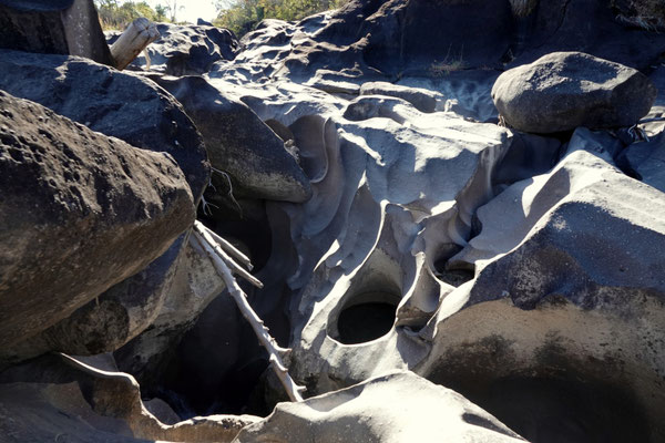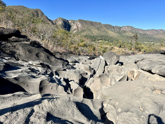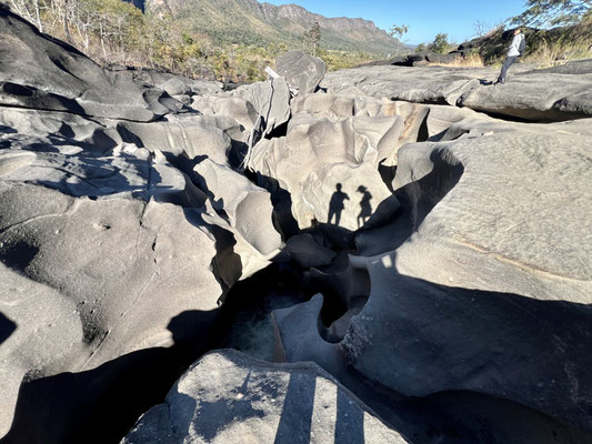 Noch ein letzter Abstecher in dieser mystischen Gegend: ins Vale da Lua – das „Tal des Mondes“. Eine Granitlandschaft, vom Wasser über Jahrtausende ausgewaschen, lässt tatsächlich den Gedanken zu, auf einem anderen Planeten zu sein. Schwerelos sind wir zwar nicht unterwegs, aber beschwingt hüpfen wir über die rundgeschliffenen Felsen.