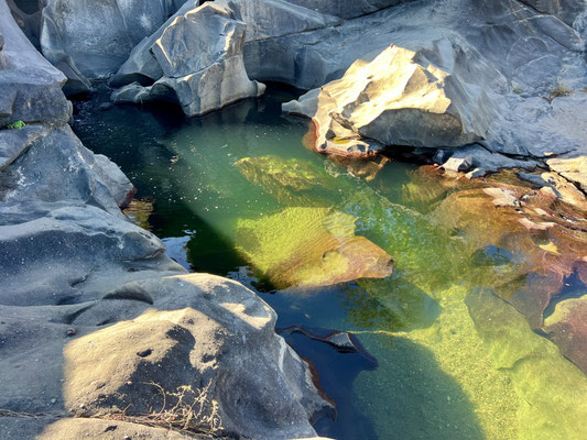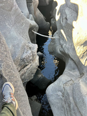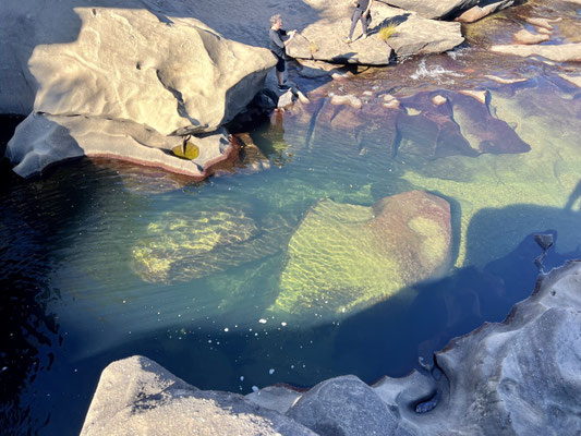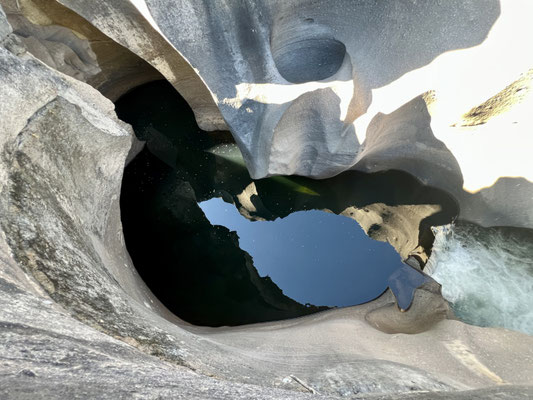 Im Valle de Lua hat die Natur ein Meisterwerk erschaffen: glattgeschliffene Felsen, geformt wie eine Mondlandschaft, durchzogen von glasklaren Wasserbecken. Frühmorgens, wenn die Luft noch frisch und klar ist, hüpfen wir von Stein zu Stein, begleitet vom leisen Surren der Kolibris. Das Wasser lockt – kühl, klar und erfrischend. Ein Bad ist einfach Pflicht.