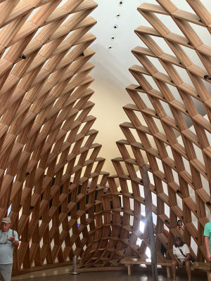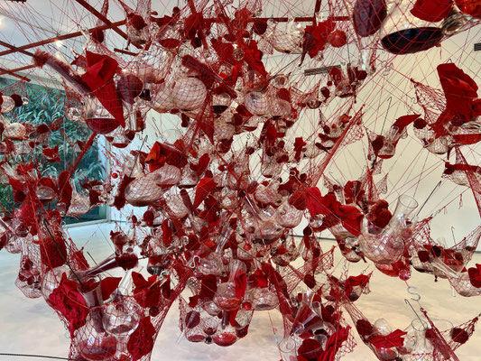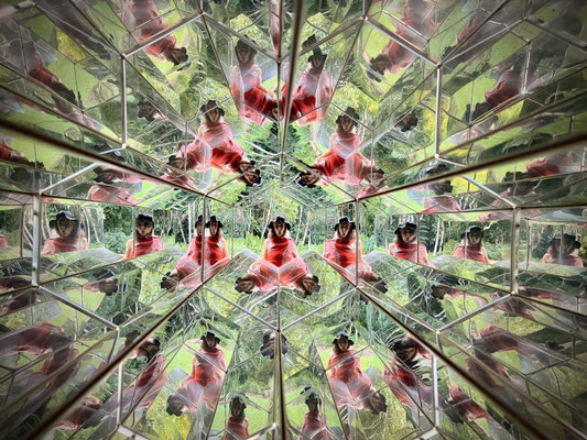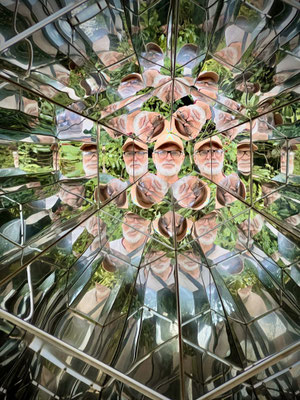 Wir verlieren uns in den verschlungenen Wegen, begegnen Skulpturen, Klanginstallationen und lichtdurchfluteten Räumen. Vieles dreht sich um Umwelt, Gesellschaft, Krieg – aber auch um Hoffnung und Menschlichkeit.