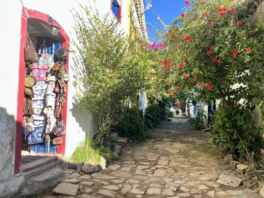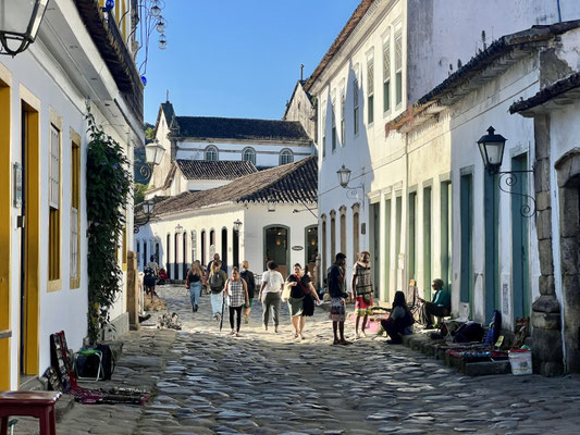Die autofreien Wege aus uraltem, unregelmässigem Kopfsteinpflaster fordern in Flipflops volle Konzentration. Weisse Häuser mit farbigen Fensterläden reihen sich fein herausgeputzt aneinander. In den Gassen erklingt Musik: mal ein Strassenmusiker mit Gitarre, mal Samba-Rhythmen aus offenen Türen.