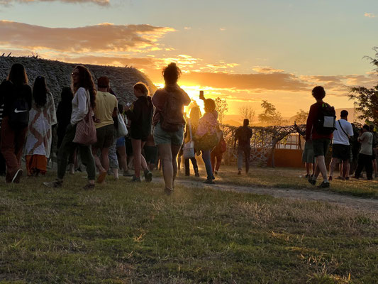 Am nächsten Morgen, im ersten Licht des Tages, wecken uns Trommeln und Gesänge. Sanft, kraftvoll. Ein würdevoller Abschied – wir brechen auf.