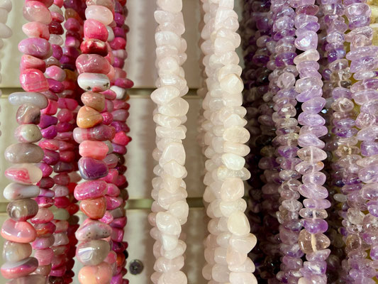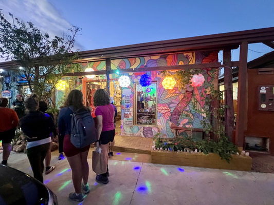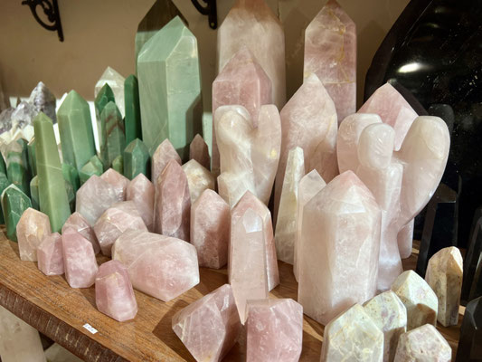Wir schlendern weiter vorbei an bunten Cafés, Bio-Läden, Räucherstäbchen, Tarotkarten – und überall funkeln Kristalle aus den Schaufenstern.