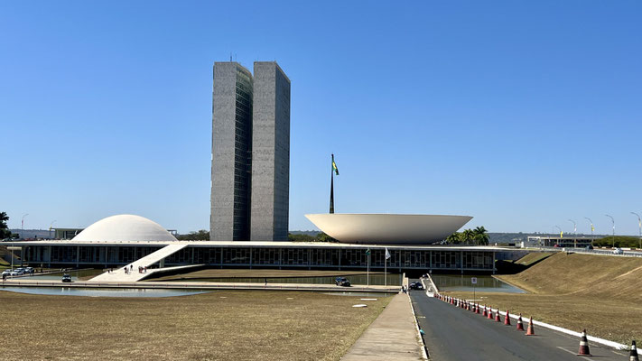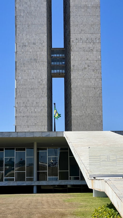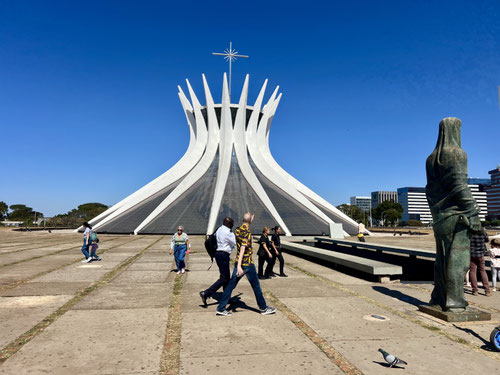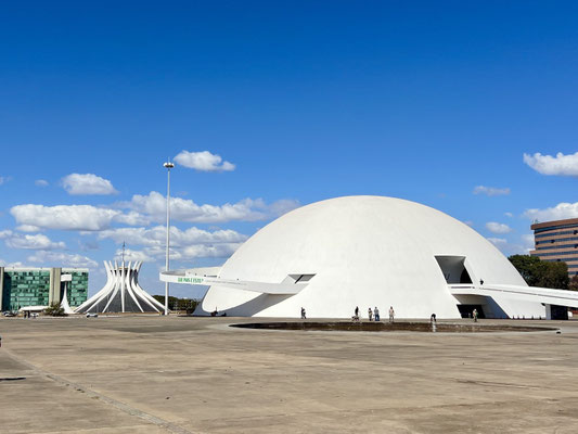 Am nächsten Morgen starten wir früh mit unseren Faltvelos Richtung Zentrum. Auf dem Programm: Niemeyers Kathedrale, der Kongress, der Platz der drei Gewalten, der elegante Itamaraty-Palast und das Museu Nacional.