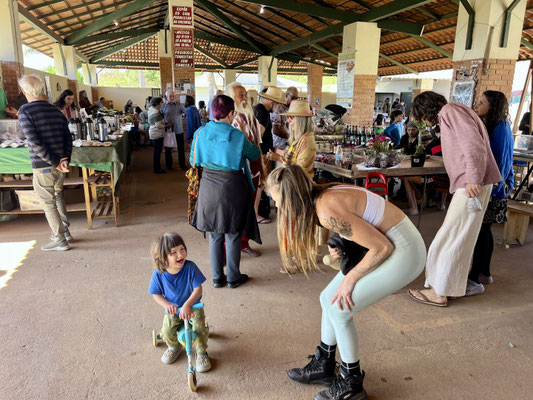 Doch als wir zurück im Dorf sind, merken wir: Es ist Wochenende, und entsprechend voll. Zu viele Besucher, zu eng – das passt heute irgendwie nicht. Also drehen wir um und fahren zurück nach Alto Paraíso – dort gefällt es uns ohnehin besser.