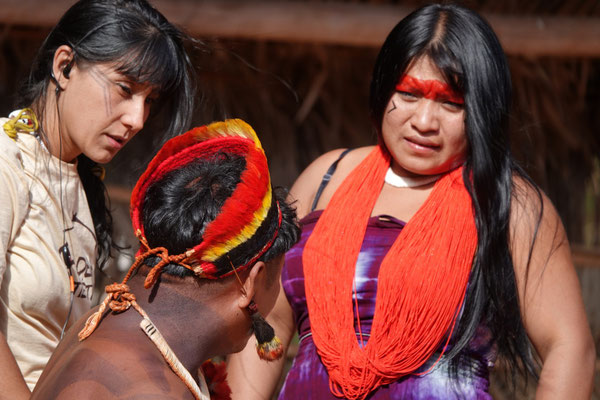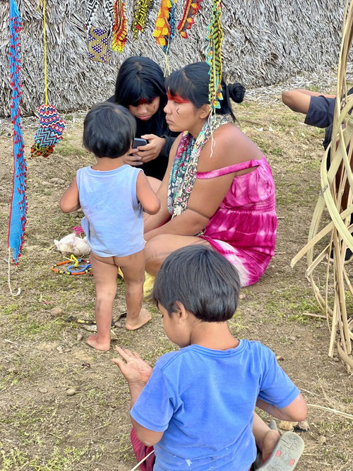 Wir sagen natürlich sofort zu – und werden herzlich empfangen: von Karina, Natascha und ihrem Mann Tupya. Und jetzt haltet euch fest: Tupya ist der indigene Mann vom Wochenmarkt – der uns mit seiner der Ruhe, der Präsenz, beeindruckt hat.