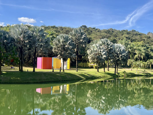Inhotim ist mehr als ein Museum – es ist ein Erlebnisraum. Es verbindet zeitgenössische Kunst mit botanischem Garten. Zwischen Palmen, spiegelnden Wasserflächen und tropischem Wald verteilen sich Pavillons mit Werken brasilianischer und internationaler Künstler:innen.