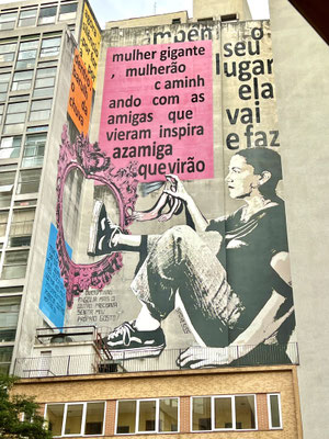 Auf dem Weg zur Catedral da Sé blicken wir immer wieder nach oben – und ich bin begeistert von den farbenfrohen Murals, die ganze Hausfassaden schmücken. Manche dieser Kunstwerke sagen mehr als tausend Worte – und ganz sicher mehr als viele kluge Sätze mancher Politiker.