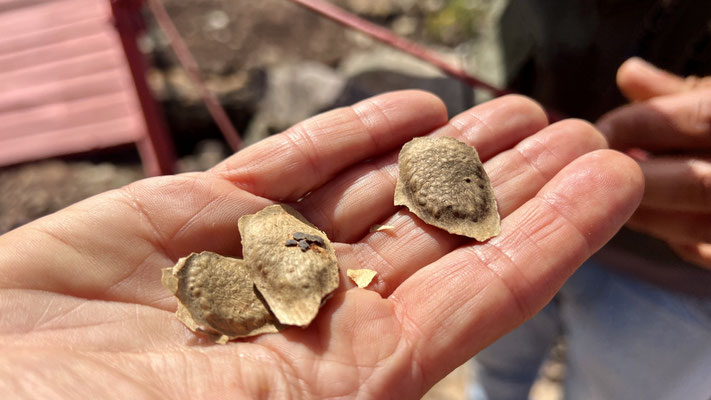 Obwohl wir hier übernachten dürften, zieht es uns am Nachmittag weiter. Die Sehnsucht nach Einsamkeit, Beach und Wellenrauschen ist einfach zu gross. Vor der Abfahrt darf ich noch Aloe Vera abschneiden und Mandarinen pflücken. Aus den kleinen, kernreichen Bio-Mandarinen presse ich – mühsam und zeitaufwendig – ein halbes Glas Saft.