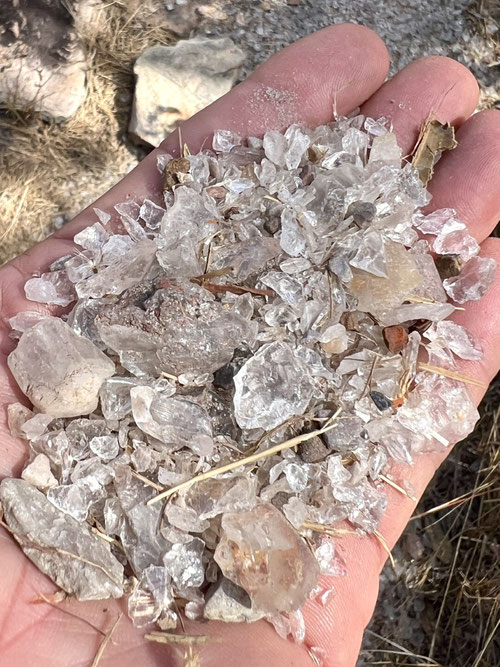Beim Wandern glitzern Splitter von Quarz, Amethyst und milchigem Glas in der Sonne. Wie mag es wohl einst in den zahlreichen, heute stillgelegten Minen ausgesehen haben? Ich jedenfalls bin hochmotiviert und mit Hammer, Schraubenzieher und Meissel bewaffnet – die Schatzsuche kann beginnen!