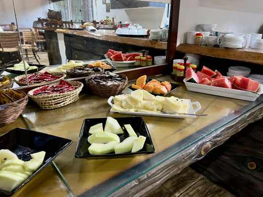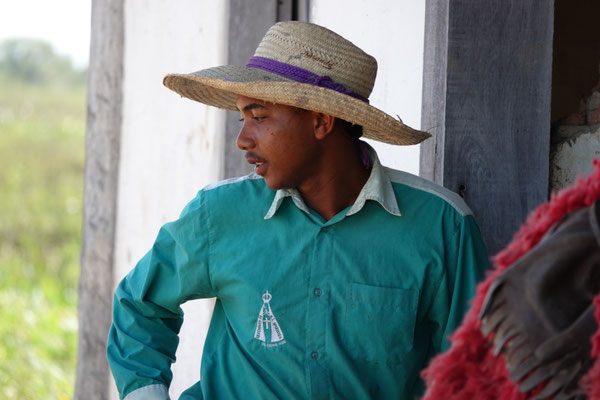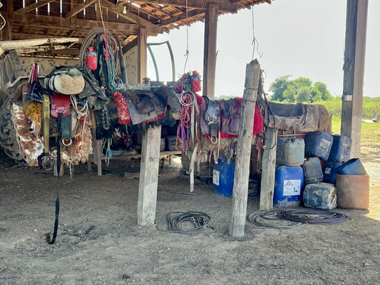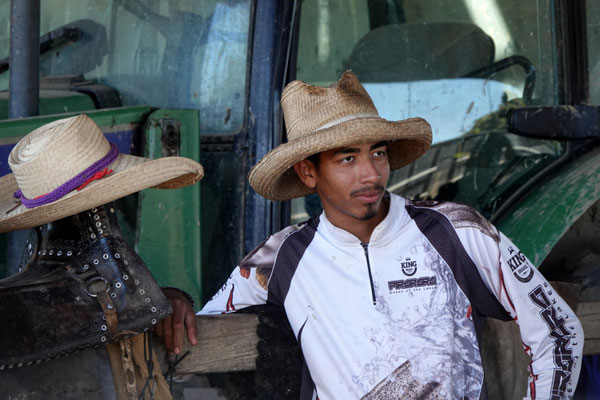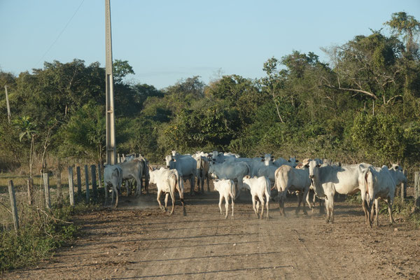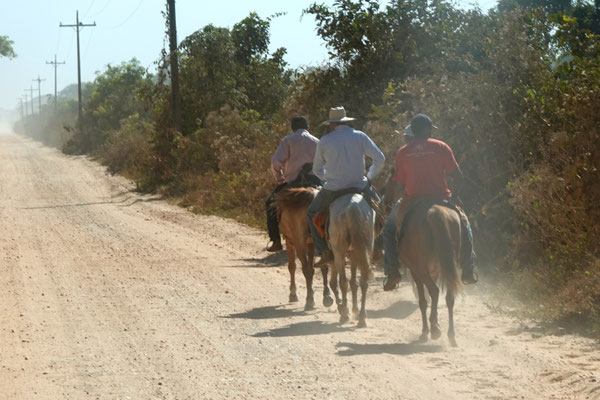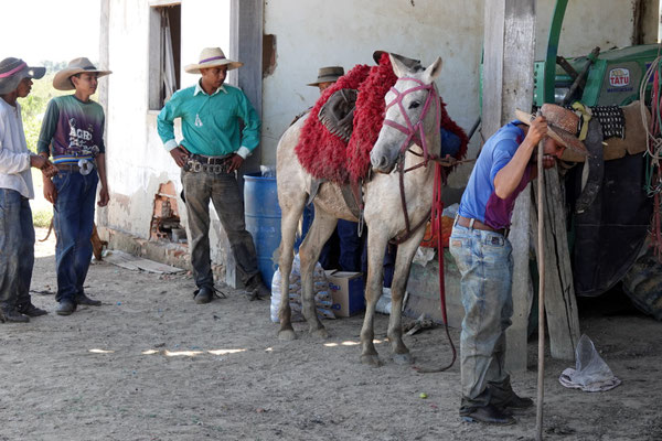 Frühmorgens rumpeln wir durchs Hinterland, öffnen Gatter und werden von den neugierigen Blicken kleiner Kapuzineräffchen begleitet. An einer Fazenda empfängt uns eine Handvoll Gauchos – und selbstverständlich beginnt Gastfreundschaft hier mit einem Stück Fleisch zum Probieren – ich lehne dankend ab.