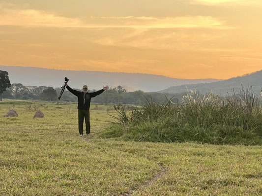 Fehlt nur noch der Ameisenbär. Termitenhügel gäbe es reichlich, doch bei Sonnenuntergang bleibt er uns verborgen. Am nächsten Morgen starten wir einen zweiten Versuch – gut eingesprüht, denn Dengue- und Zika-Mücken lieben mich anscheinend besonders. Leider auch diesmal: Fehlanzeige. Aber Dani hält weiter Ausschau – und ich manifestiere. Meist erfolgreich.