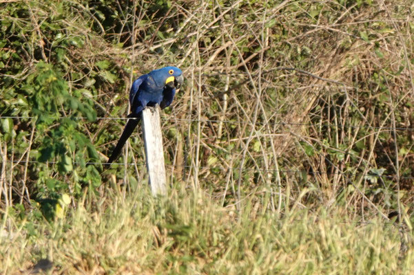 Auf dem Rückweg fällt mir ein Schild ins Auge: Der Zoo Zürich unterstützt hier ein Schutz- und Aufzuchtprojekt für Hyazinth-Aras. Ihr Lebensraum ist auf ein Minimum geschrumpft, illegaler Handel hat die Population fast ausradiert – umso schöner zu sehen, dass hier nicht nur geredet, sondern gehandelt wird.