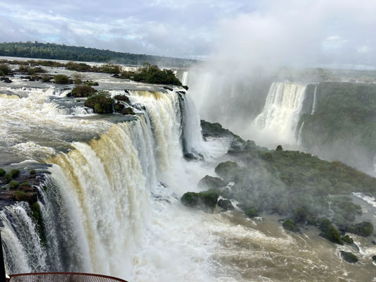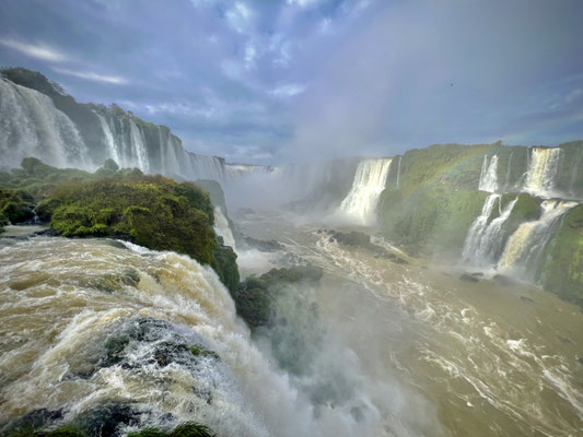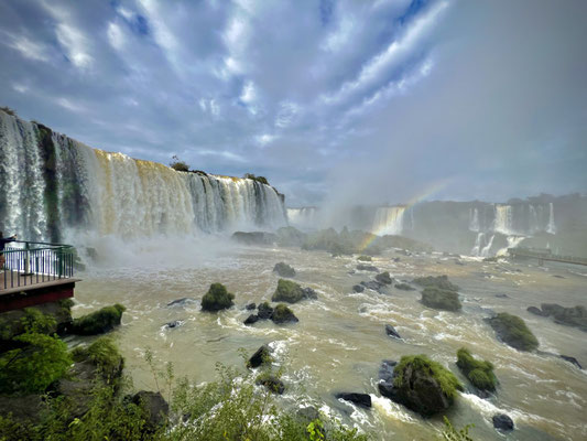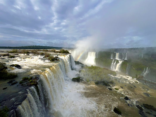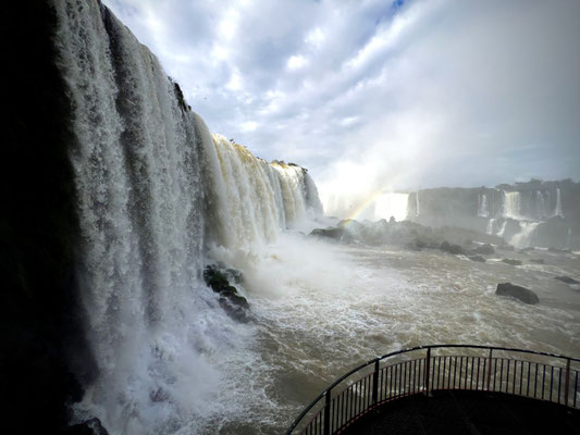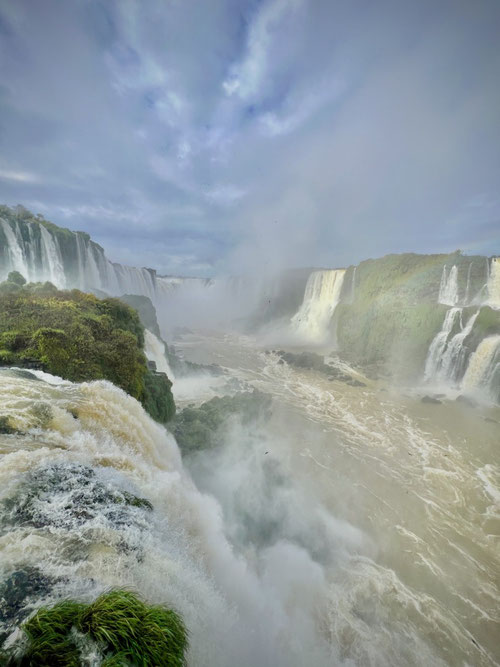 Ohne Umwege erreichen wir Foz do Iguaçu. Über 270 Wasserfälle stürzen hier bis zu 80 Meter in die Tiefe. Ich wünsche mir einen Regenbogen – und sage es laut. Ob es klappt? Schon von weitem meine ich das Rauschen zu hören.