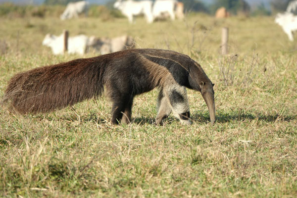 Ameisenbären sind nicht blind, sehen aber schlecht. Sie verlassen sich auf Geruch, Tastsinn und Gehör – offenbar hat mich dieser sanfte Riese erst im letzten Moment wahrgenommen.