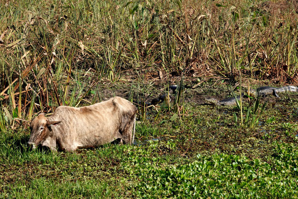 Solche Touren durchs hohe Gras mache ich trotzdem mit Vorsicht. Schlangen gibt es hier reichlich, und einer Anakonda möchte ich nicht zu nahekommen. Die würden wir allerdings wohl schon von weitem sehen. Naja… ausser in meinem Kopfkino, wo sich gerade riesige Sci-Fi-Schlangen durchs Gras winden – den Rest der Szene dürft ihr euch selbst ausmalen.