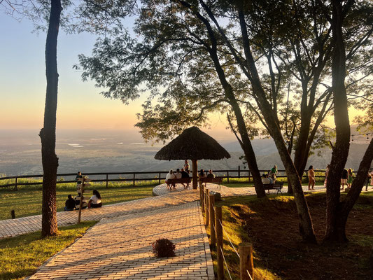 Wir erreichen das Hochplateau an einem Samstag – perfektes Timing, um erst einmal in der angenehmen «Kühle» zu verschnaufen, bevor wir uns wieder in die Hitze der Ebene stürzen. Hier oben können wir sogar wieder atmen, ohne das Gefühl zu haben, unser Hirn dünstet im eigenen Saft.