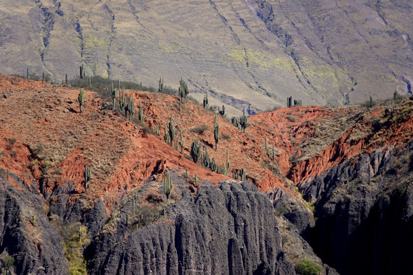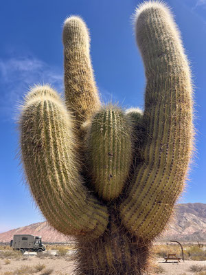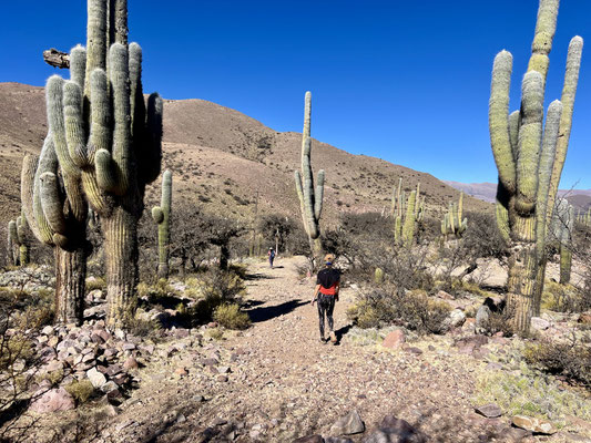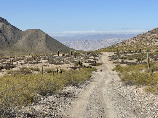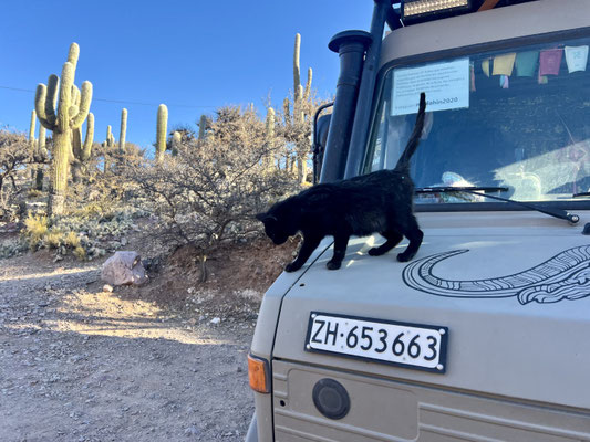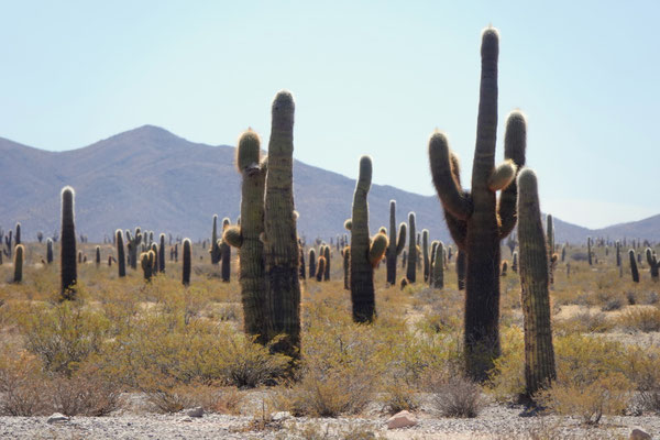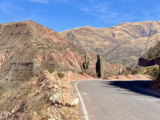 Von den grünen Hängen und bunten Märkten Saltas führt unser Weg hinaus in eine völlig andere Welt. Die Farben werden gedeckter: Grau, Braun, Ocker. Die Strassen ziehen sich endlos, die Höhenmeter steigen, die Luft wird dünner – und überall stehen Kakteen. Die stachligen Gesellen faszinieren uns, auch wenn es so wirkt, als würden die meisten uns den Stinkefinger zeigen.