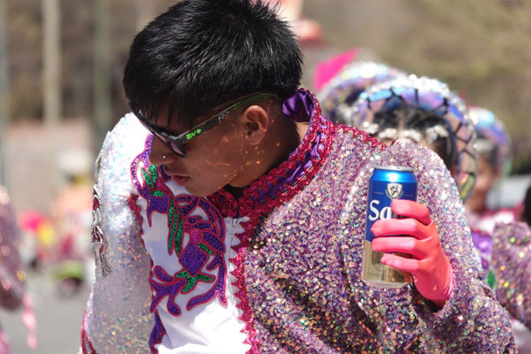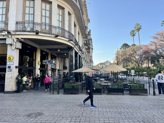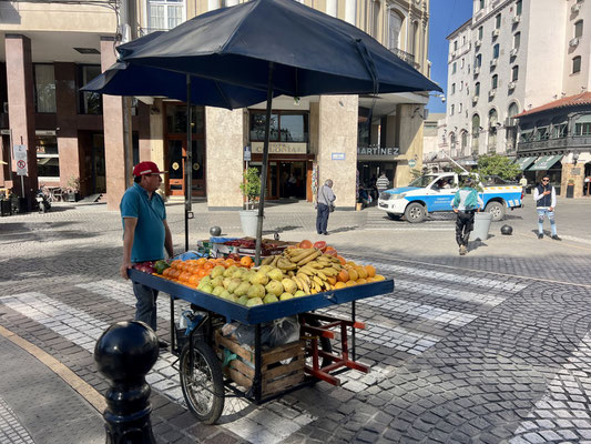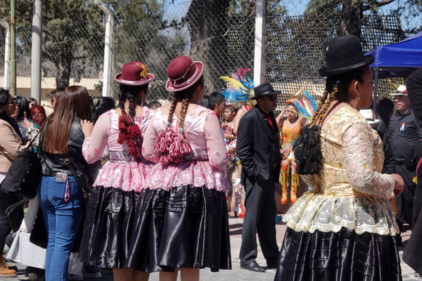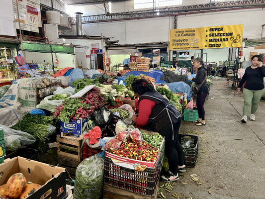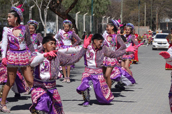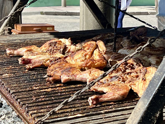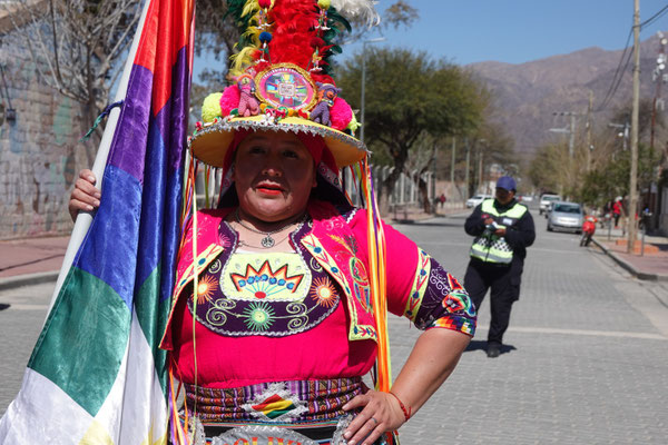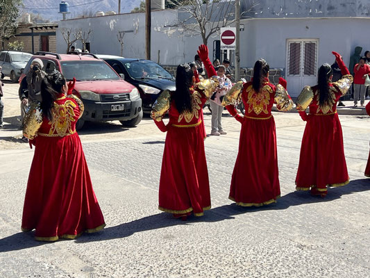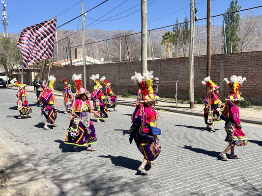 Wir vermuten, einer Morenada beizuwohnen, denn die auffälligen Kostüme und Kopfbedeckungen stammen ursprünglich aus Bolivien. Am Ende des Zuges werden Bier und Empanadas verteilt, und auch wir dürfen zugreifen – welch ein Genuss! Danach noch ein kurzer Abstecher in den Supermarkt: Dani verschwindet wie immer selig zwischen den Weinregalen auf der Suche nach einem lokalen Malbec, während ich den Rest des Einkaufs erledige.