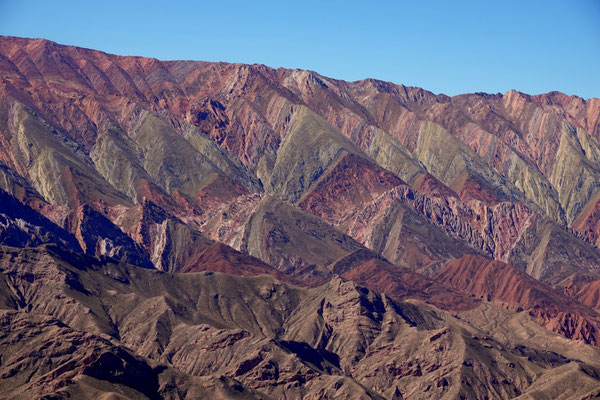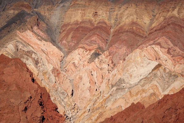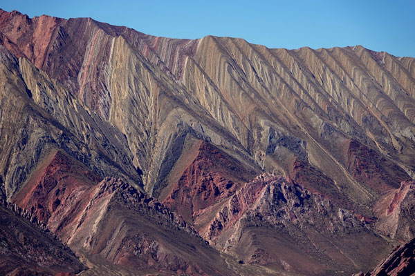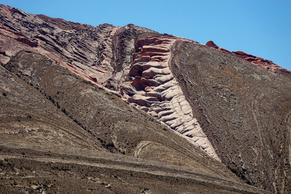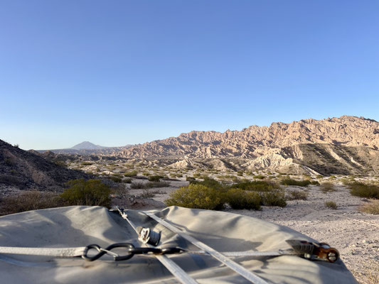 Am nächsten Morgen übernachten wir noch in der Nähe und bewundern endlich den Cerro Pollera de Coya. Es ist Montag – zum Glück. Denn das Restaurant hat geschlossen, und so bleibt uns der Zauber vom Vortag ungetrübt.