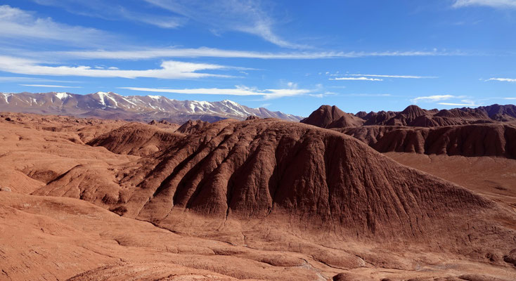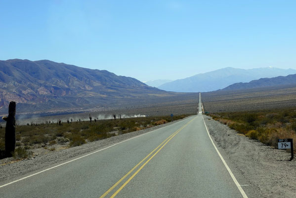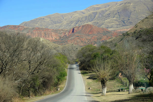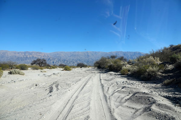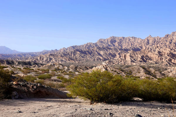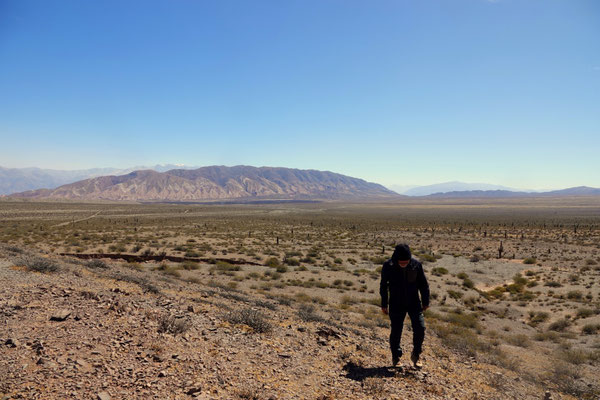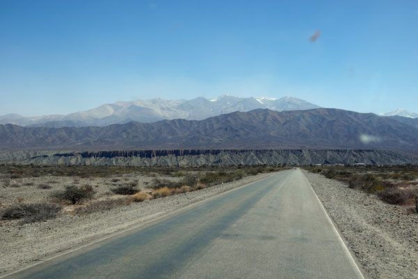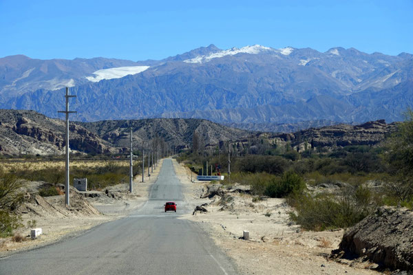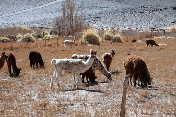 Heute setzen wir unsere Reise auf der legendären Ruta 40 fort. Die Landschaft verändert sich ständig, und erstaunt fotografieren wir Rebstöcke, die inmitten weiter Andentäler und staubiger Pisten wachsen. Weinanbau in dieser Höhe hätte ich wirklich nicht erwartet.