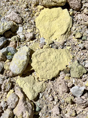 Oben angekommen riecht es nach Schwefel. Aus dem Boden steigen weisse Dampfwolken auf – sichtbare Zeichen dafür, dass der Vulkan noch lebt. Das Wasser ist heiss, nur ein kurzer Griff mit der Hand genügt. Besonders faszinieren mich die Fumarolen, kleine Schlote, aus denen die Erde atmet. Eine eindrückliche Kulisse im Inneren eines Vulkankraters – voller Kraft, Farbe und Schönheit.