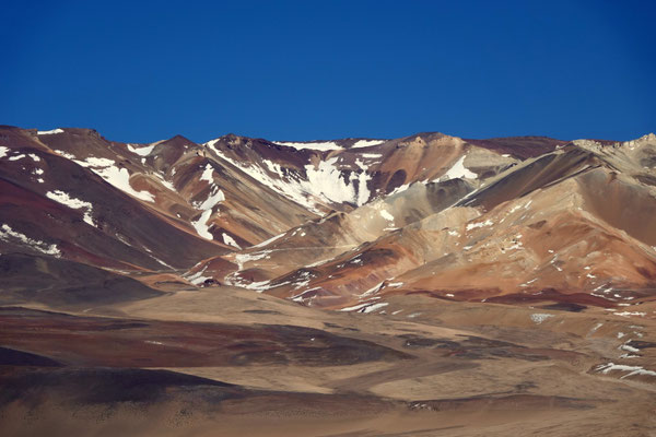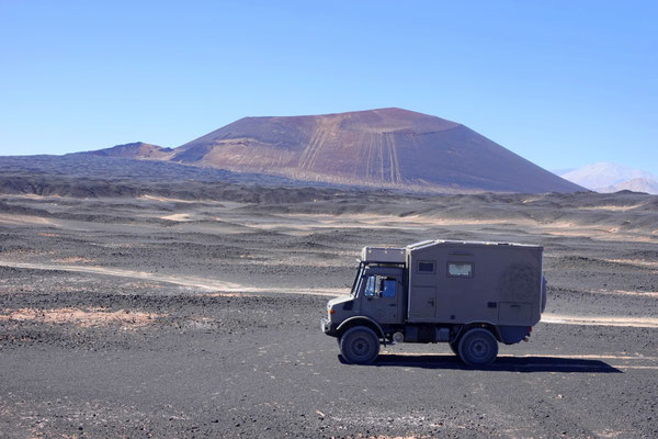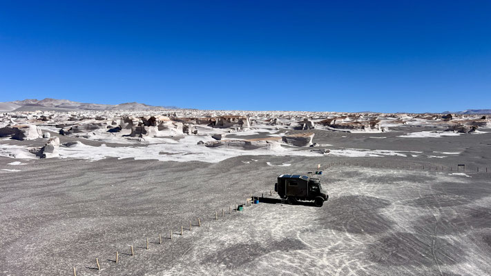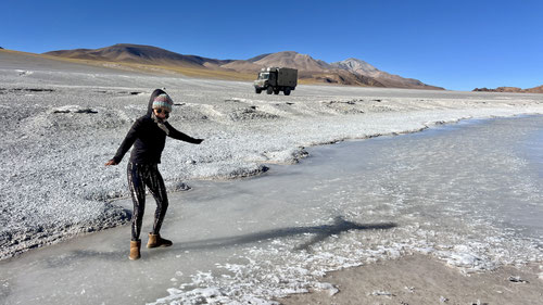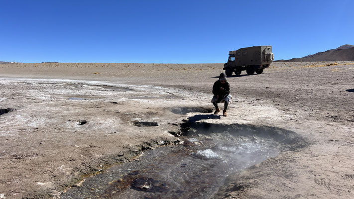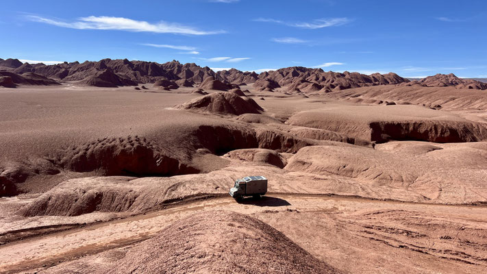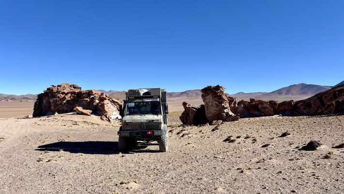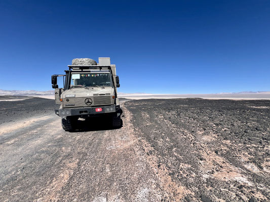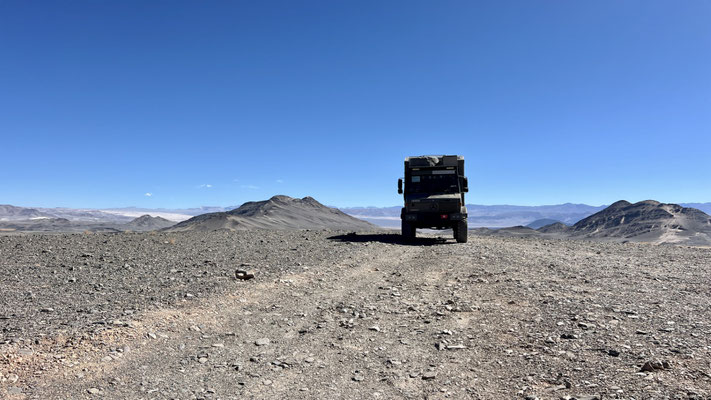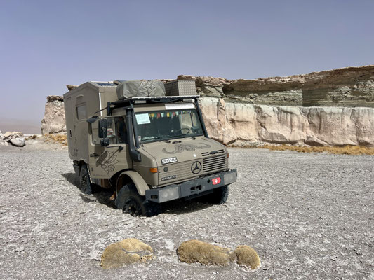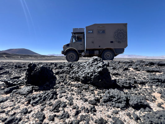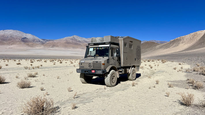Nachts sinken die Temperaturen weit unter den Gefrierpunkt, tagsüber tragen wir übereinander, was unser Kleiderschrank hergibt. Unser Unimog ist startklar – und wir? Vor uns liegt der «grosse Loop» durch die Puna: einsame Höhen, Vulkane, karge Landschaften und unendliche Weite. «Puna» bedeutet in der Sprache der Inkas Hochebene oder kalte, vegetationsarme Höhe – genau dahin zieht es uns.