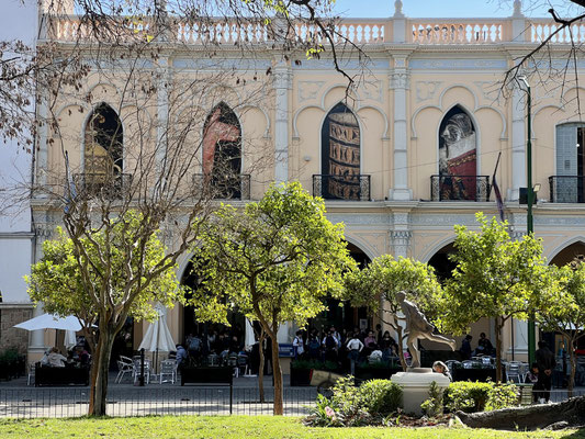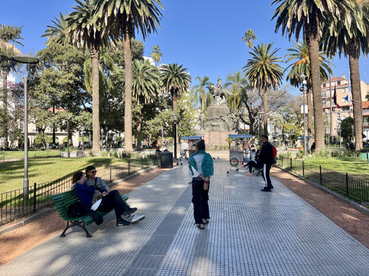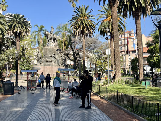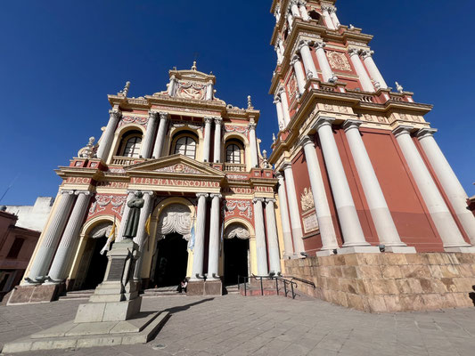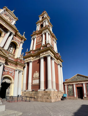 Nach endlosen, fast schon eintönigen Kilometern auf geraden Strassen erreichen wir endlich Salta. Unterwegs ziehen ärmlich wirkende Siedlungen vorbei, vermüllt und trist. Immer wieder sehen wir halbrunde, oben offene Backsteinkuppeln, aus denen Rauch aufsteigt – die «hornos ladrillos», Ziegelöfen, die offenbar das Haupteinkommen sichern. Umso überraschender wirkt die Stadt selbst wie eine Oase: lebendig, farbenfroh, umgeben von Bergen. Kolonialbauten mit schmiedeeisernen Balkonen, schattige Plätze mit Palmen und die weissen Türme der Kathedrale verleihen Salta ihren Charme. Nicht umsonst trägt sie den Beinamen «La Linda» – die Schöne.