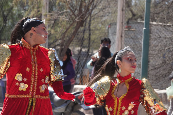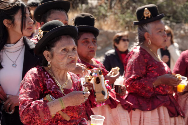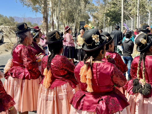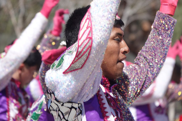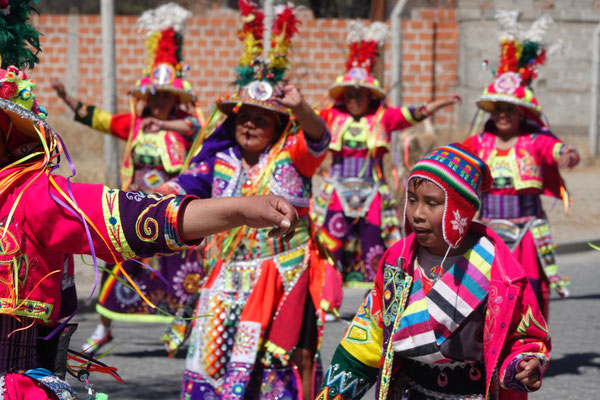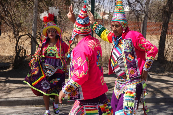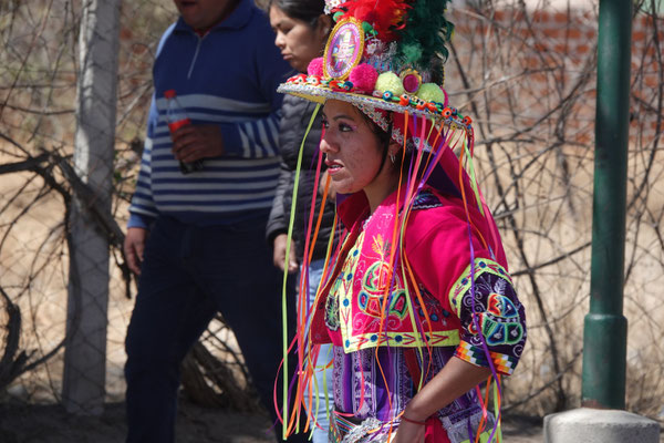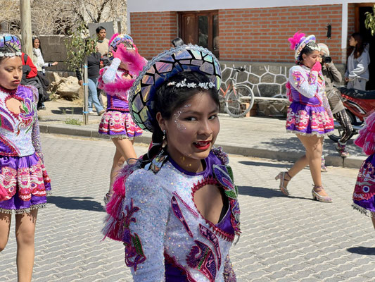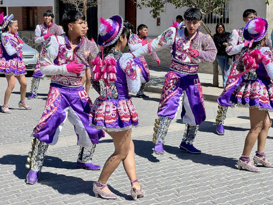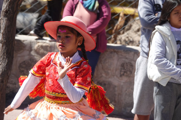 Eigentlich wollen wir nur einen gemütlichen Bummel durch den Ort machen, landen aber unverhofft mitten in einer religiösen Prozession. Die Strassen füllen sich im Nu mit Menschen in farbenprächtigen Kostümen, Tänzerinnen und Tänzer wirbeln mit unglaublicher Energie durch die Gassen, begleitet von lauter, fast technohaft klingender Musik. Schweiss tropft, Hingabe dominiert – es ist beeindruckend, wie stark Glaube und Tradition hier in den Anden miteinander verschmelzen.